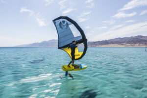 Während du auf dem Board stehst, hältst du einen symmetrisch geformten Flügel in deiner Hand, der als Wing bezeichnet wird. Dieser Wing ist aufblasbar und mit einer Leading Edge ausgestattet. Alternativ sind auch Modelle mit einer Lenkstange erhältlich, welche den Flügel aufspannt.